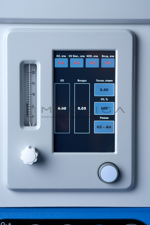 - Смеситель газов с электронным управлением и автоматической системой защиты от подачи в дыхательный контур гипоксической смеси.