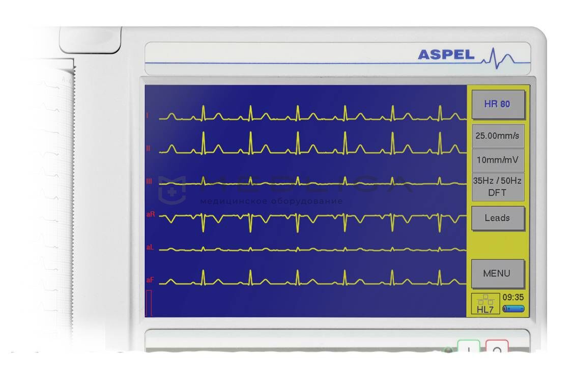 6-12 - канальный электрокардиограф ASPEL AsCARD Grey v.205 с цветным экраном, с сенсорной панелью, встроенным термопринтером, интерпретацией и анализом является одним из самых передовых электрокардиографов из своего модельного ряда. Большой объём памяти, функционал и передача информации как на USB носители, так и на E-MAIL адрес любому удалённому специалисту для консультации и пациенту с результатами расшифрованного ЭКГ – работа на этом аппарате будет доступна специалисту любого уровня.