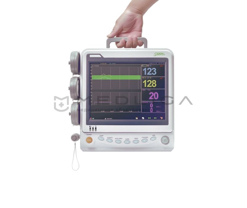 Монитор G6В оснащен транспортной ручкой, имеет возможность крепления на мобильную стойку. Встроенный аккумулятор - позволяет быть независимым от электросети, что позволяет сделать КТГ на дому или в дороге.