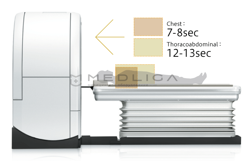 Supria 128 рассчитан на сканирование всего тела с реконструкцией 128 срезов по данным, собранным за 1 оборот.