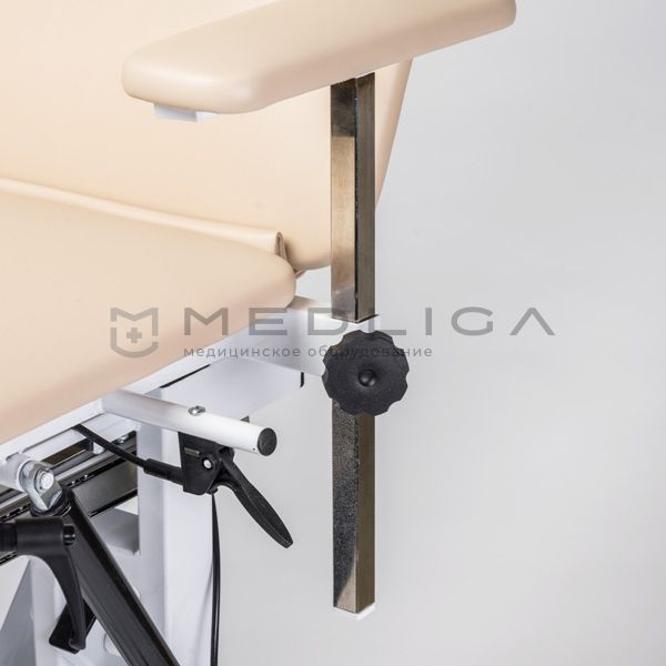 Механогидравлический привод: движения столешницы осуществляются с помощью гидродомкрата, активируемого нажатиями на педаль, и системы рычагов. Не требует подключения к электрической сети.