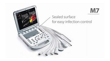 УЗИ-сканер Mindray M7 предполагает возможность 4D визуализации, отличается малыми размерами, что позволяет ему легко размешаться в небольших кабинетах и малогабаритных помещениях.