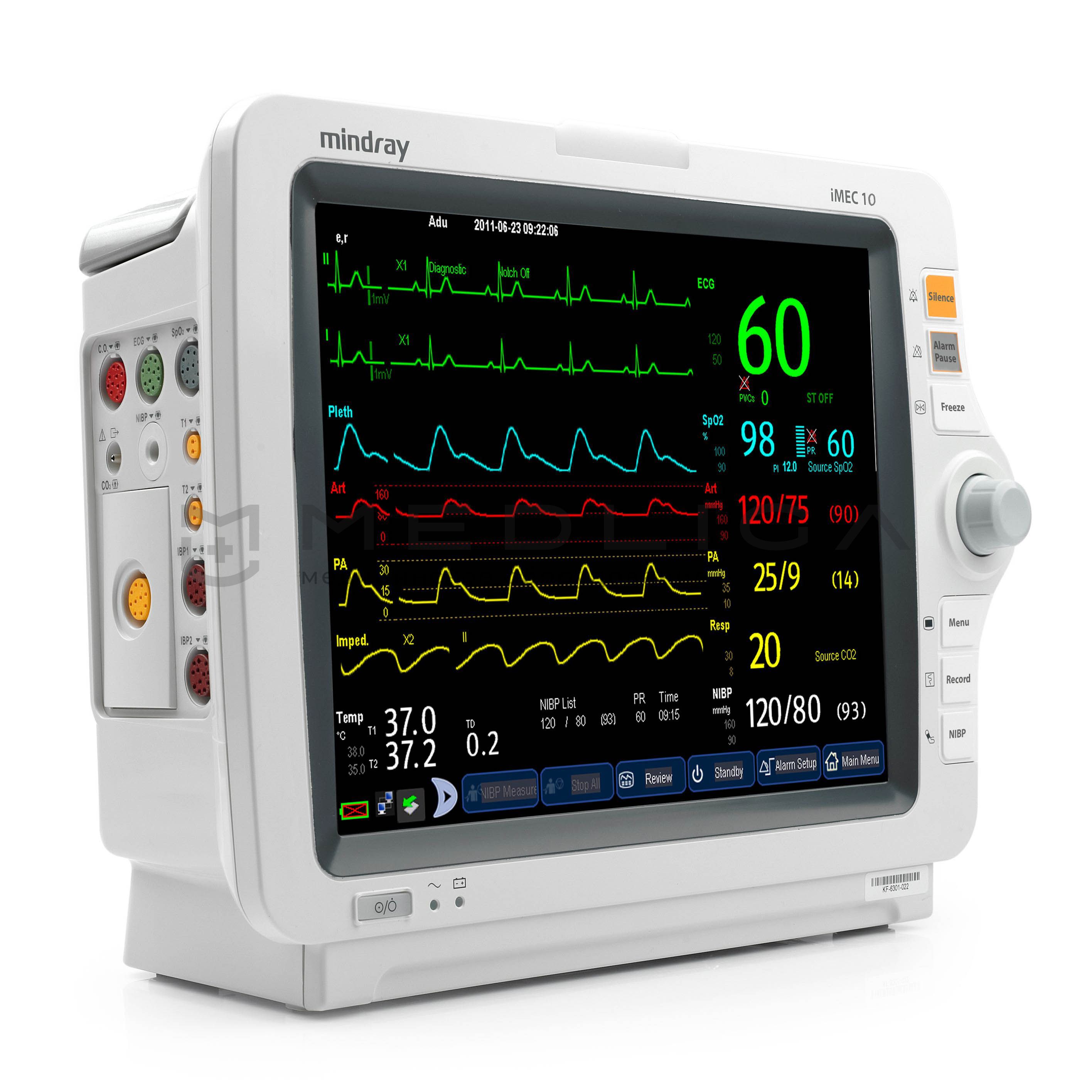 Mindray iMEC 10 – один из самых востребованных мониторов пациента данной серии с безвентиляторной конструкцией. Аппарат оснащен большим цветным экраном с диагональю 10,4 дюйма и сенсорной системой управления, отличается небольшими размерами и весит всего лишь 3,6 кг, поэтому может использоваться как в условиях стационара, так и за его пределами.