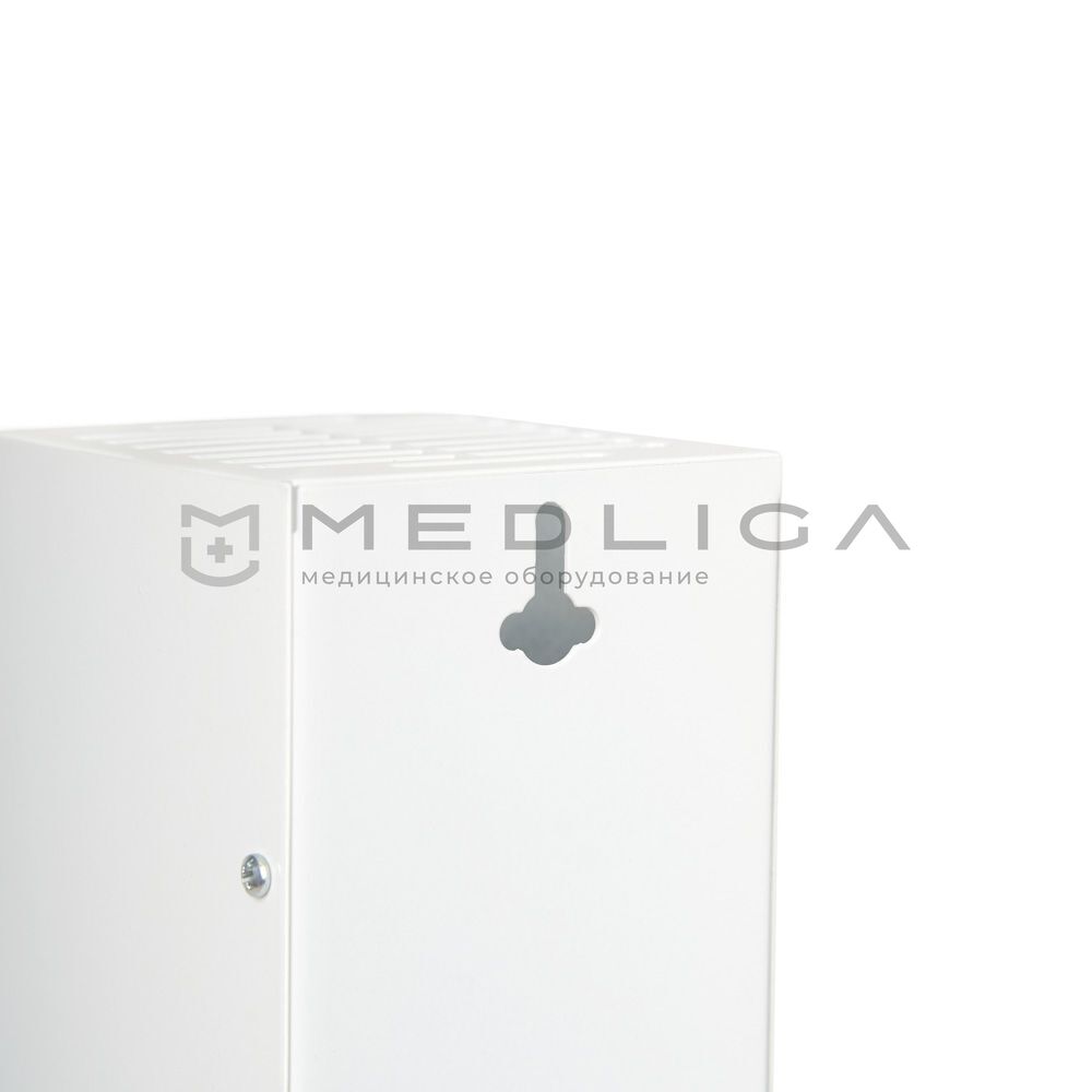 Тонкий корпус рециркулятора выполнен из металла с порошковым покрытием. УФ-лучи не проходят через его стенки, поэтому во время работы прибора находиться рядом с ним совершенно безопасно. Корпус прочен, занимает мало места, стильно выглядит и вписывается в любой интерьер. А его форма позволяет размещать прибор на полу или столе без дополнительной подставки, при этом циркуляция воздуха не нарушается.