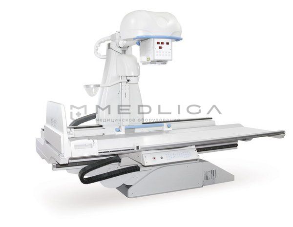 - Дистанционно управляемый стол-штатив с расположением рентгеновского излучателя над столом-штативом, а приёмника изображения под декой стола даёт возможность проведения комплексных рентгенографических и рентгеноскопических исследований, принятых в общей рентгенологии для диагностирования заболевания, определения локализации и протяженности выявленных патологических изменений, а также их динамики в процессе лечения, а именно проведение исследования желудочно-кишечного тракта, черепа, скелета, урографию, миелографию, линейную томографию, все виды рентгенографии, в том числе и рентгенографию грудной клетки.