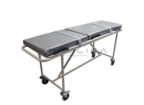 На верхней раме тележки закреплена панель из ламинированной древесно-стружечной плиты ЛДСП. Комплектуется съемным матрацем — носилками в чехле из армированной ткани с ПВХ покрытием с шестью ручками для переноски и перекладки пациента. Для фиксации пациента предусмотрены 2 ремня из ленты Velcro.