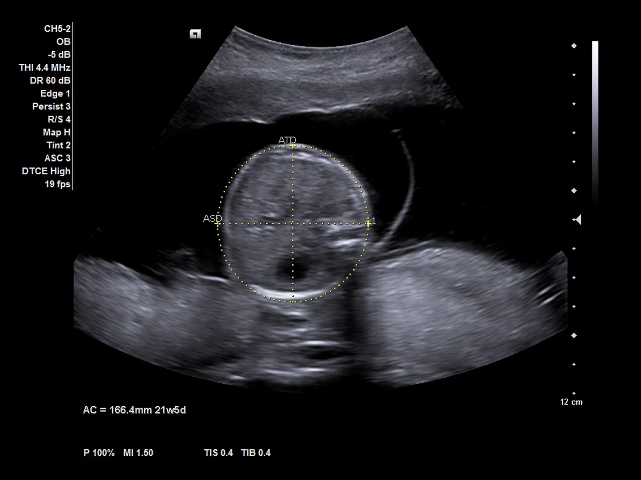 Измерение окружности живота плода с помощью функции syngo® Auto OB и датчика CH5-2